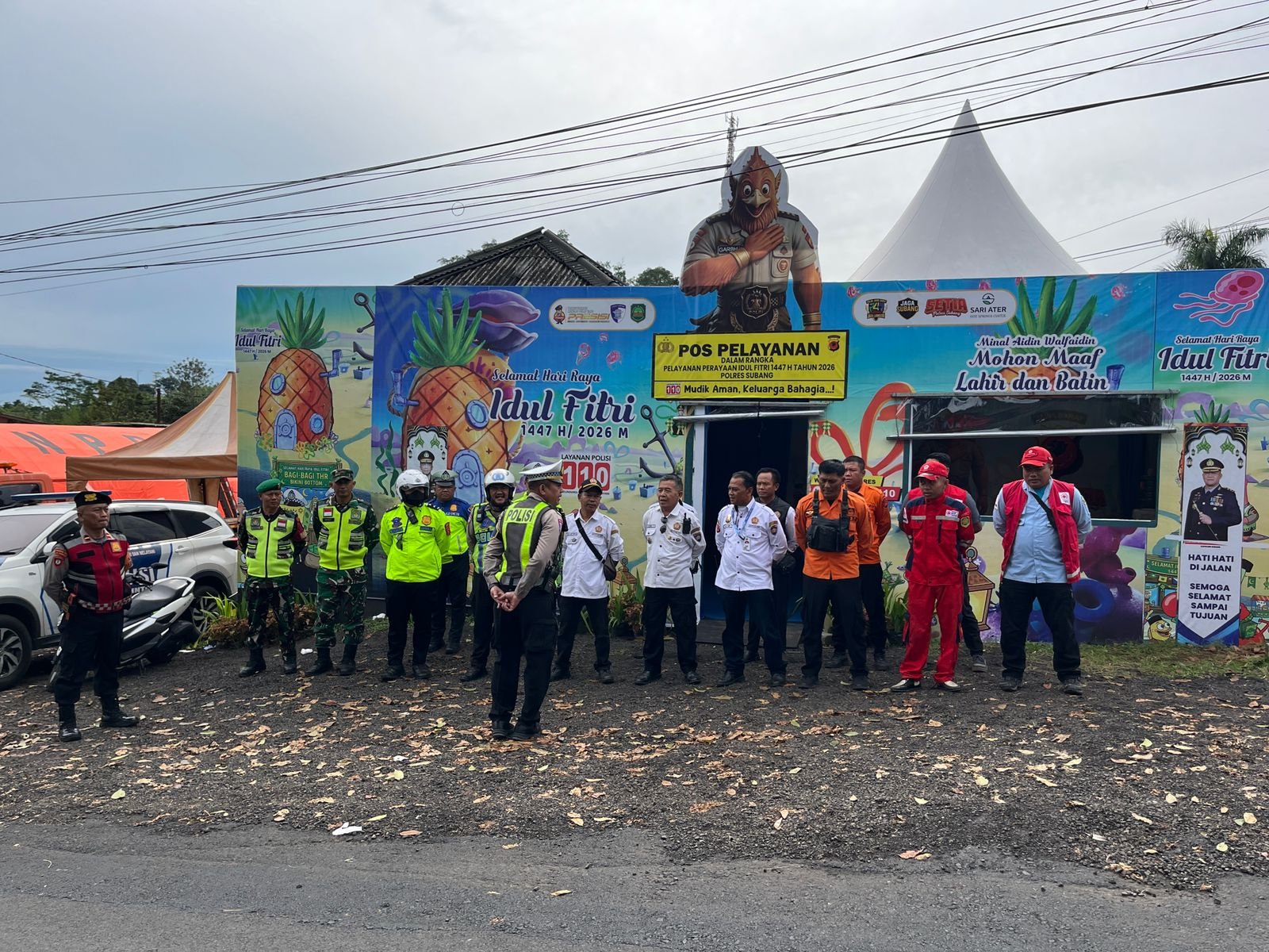 Kegiatan tersebut ditandai dengan pelaksanaan apel pagi di Pos Pelayanan Sari Ater pada H+4 Idul Fitri, Selasa (24/3/2026). Apel dipimpin langsung oleh Kanit Lantas Polres Subang, IPTU Sahroni.
